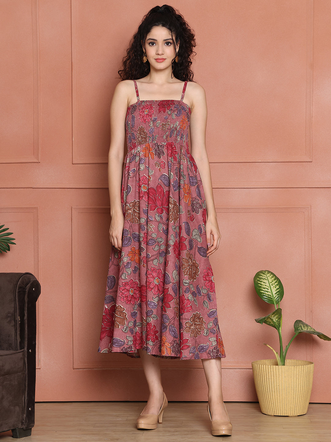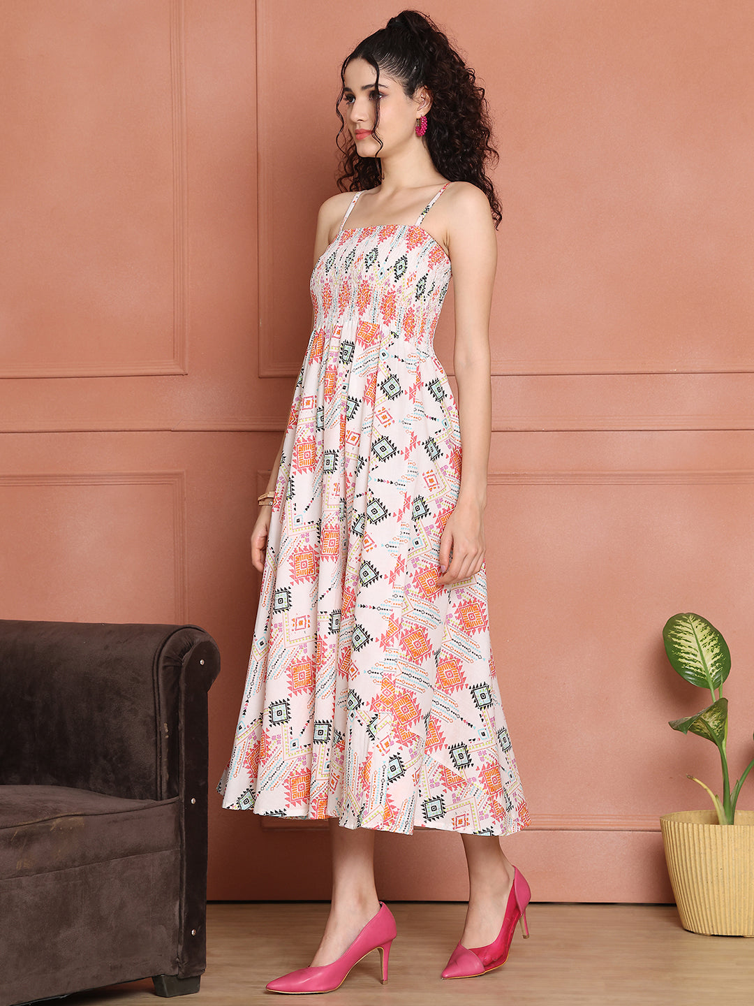 Aawari Cotton Unique Printed Spaghetti Strap Dress - Western Wear
