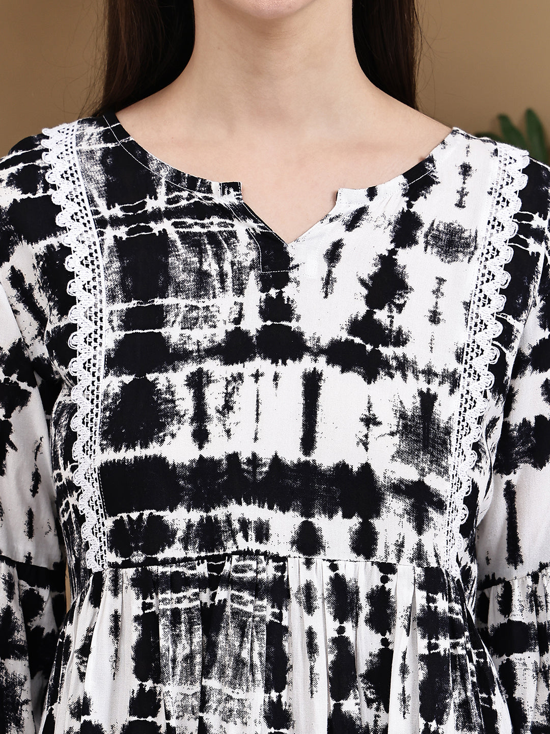 Aawari Rayon Tie & Dye Black And White Short Dress - Midi Dresses / Western Wear