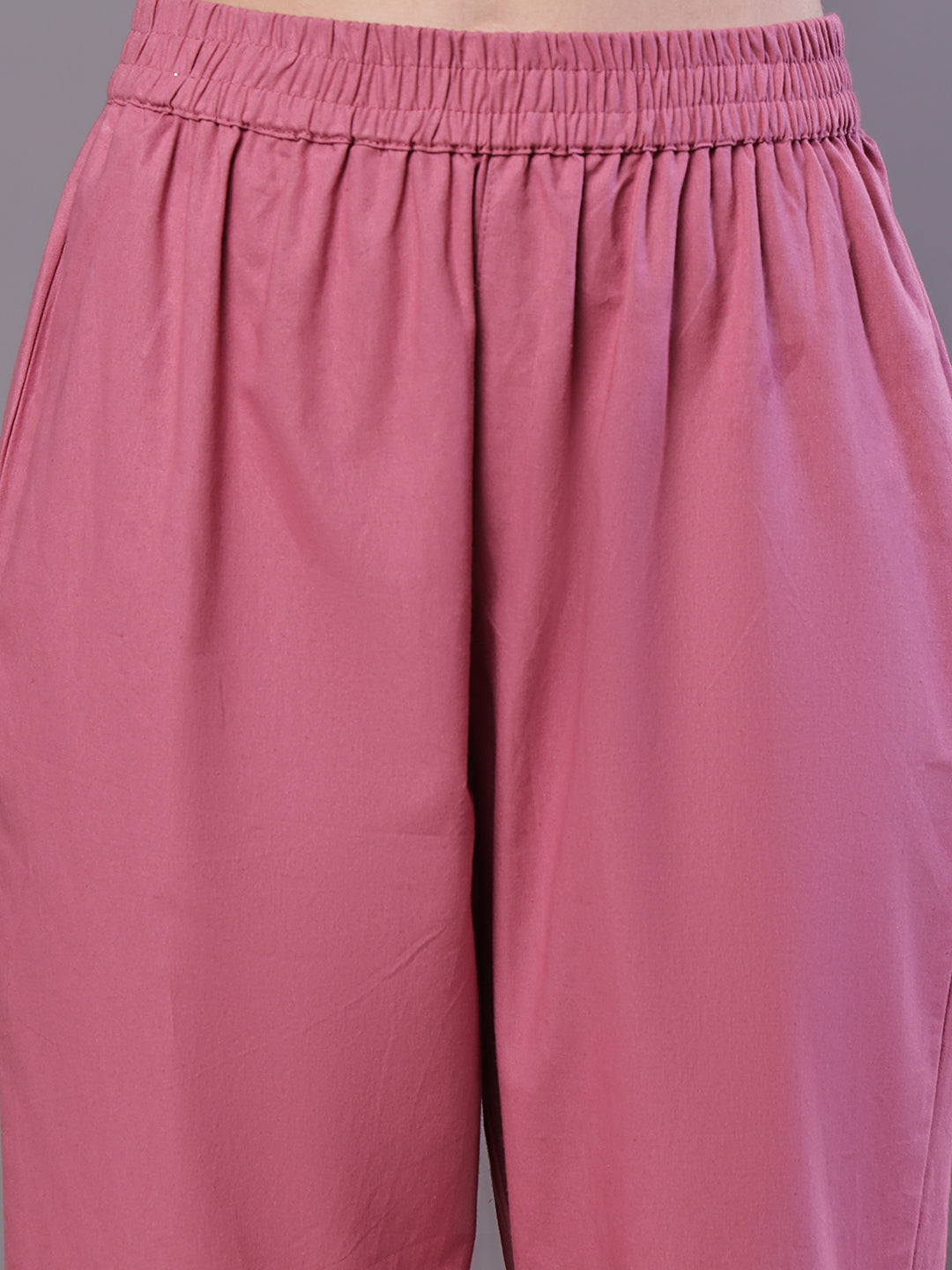 Aawari Rust Pink Chanderi Printed Kurta Set with Dupatta - Suit Sets