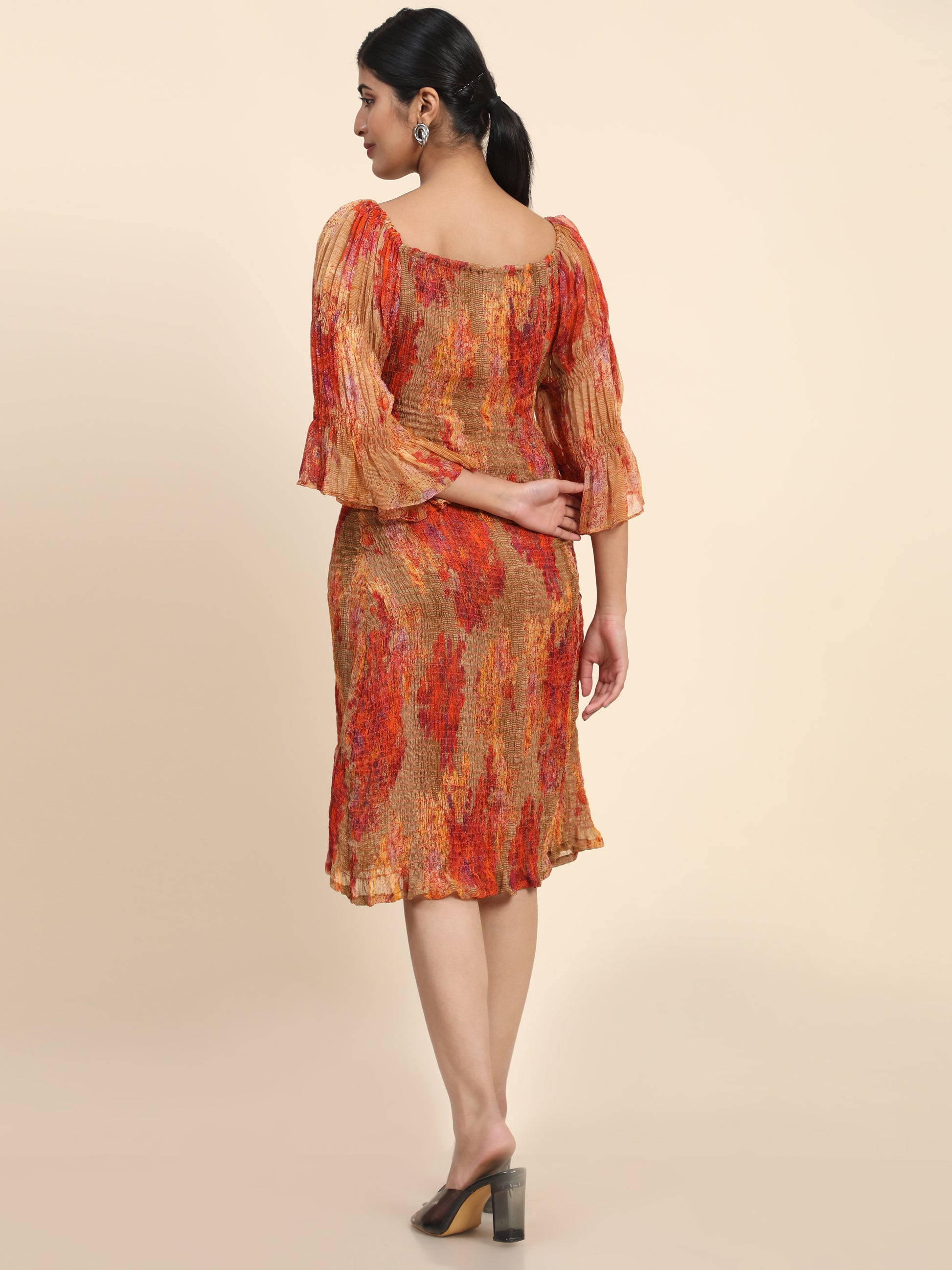 Aawari Women Chiffon Nasturcian Flower Printed A-Line Midi Dresses / Western Wear