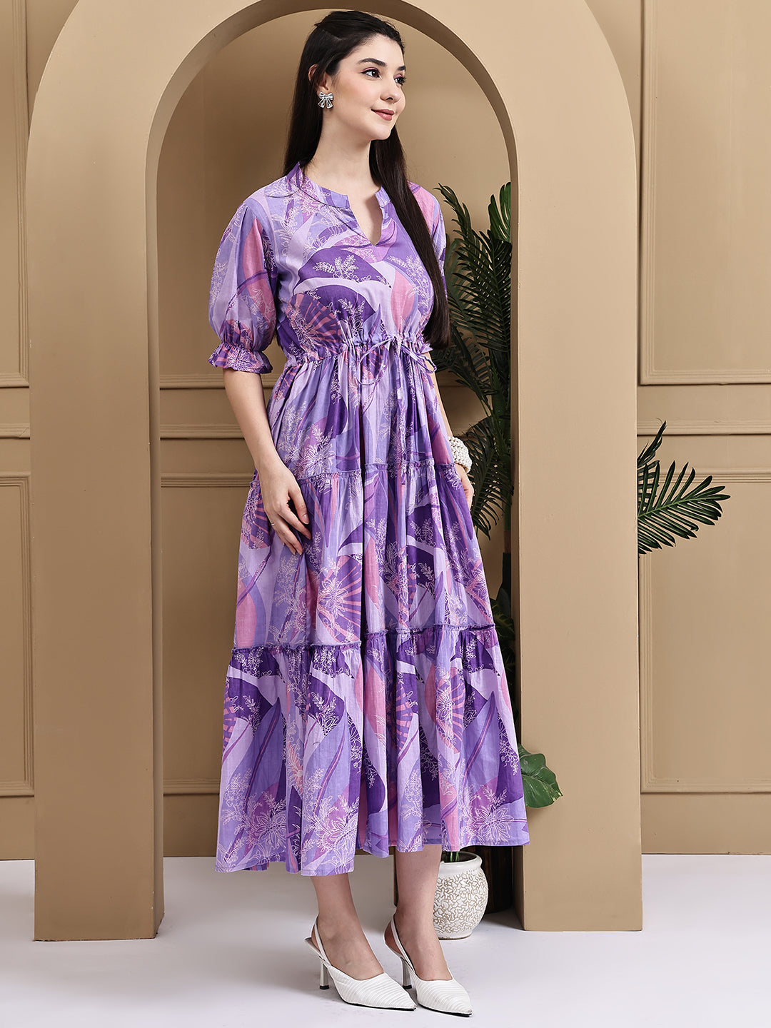Aawari Women Cotton Printed Knot Dresses / Western Wear / Maxi Dresses